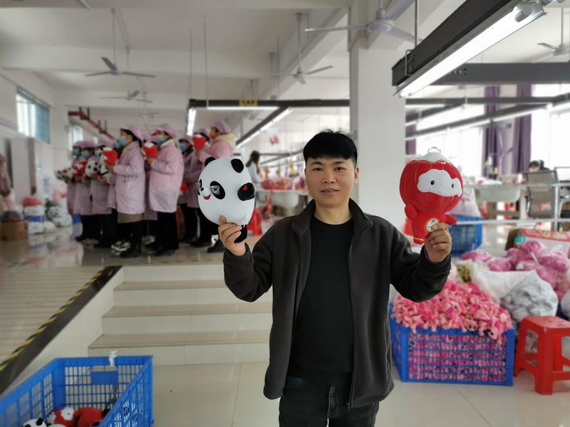 “‘冰墩墩’‘雪容融’的制作工序复杂,质量要求高,平均制作一个需要花费2个小时。为了顺利完成代加工任务,工人全员上岗。在大家的密切配合下,每天可以生产4500只‘冰墩墩’和2500只‘雪容融’,首批货物已在3月4日交货。”何承旺说。