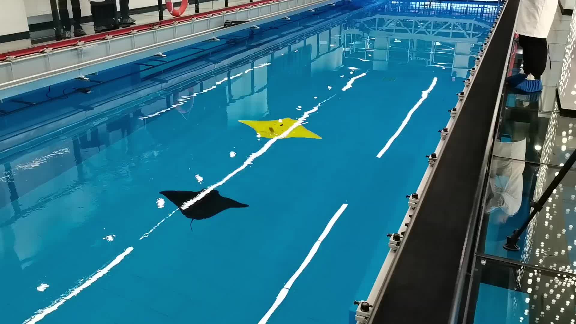 2022年,许久未见的“魔鬼鱼”再次进化。研发团队在海洋馆开展了仿蝠鲼柔体潜水器与真实鱼群的同游实验,对提高潜水器仿生性能具有里程碑意义,为未来实现“智慧海洋馆”“智能海洋牧场”等应用场景奠定了基础。