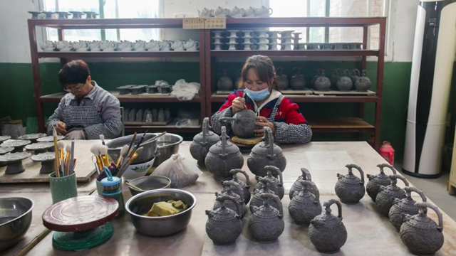 谈到初心,梁亚萍说,她一开始发现当地妇女对耀州瓷制作并没有什么想法,只是想有一份稳定的工作。“我希望不仅能为大家解决就业问题,还能让大家喜欢上这个行业。”