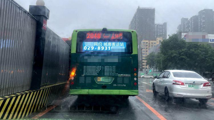 西安街头一辆公交车上播出的网约车广告