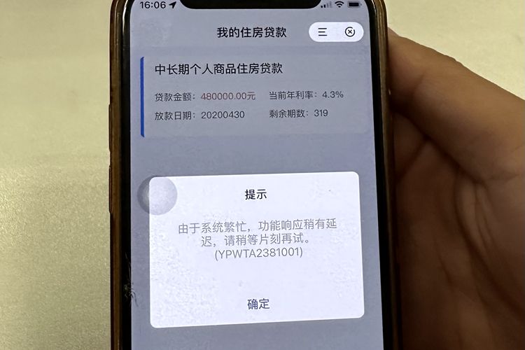 部分手机银行提示个人住房贷款业务“系统繁忙”