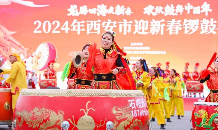2024年西安市迎新春锣鼓大赛在西安汉长安城未央宫国家考古遗址公园精彩开锣。