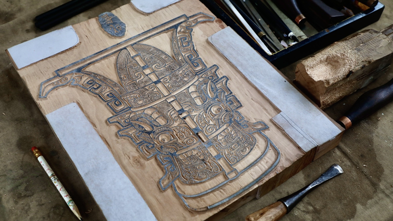 采访当天,邰伟向记者们展示了自己已经刻好的“何尊”,刻工精细、线条流畅,刻板上方的“中国”二字,让整个版画细节满满。未来,邰伟还将一直坚守在木版年画的非遗传承、发展的工作中,“守艺”与传承的故事仍在继续……