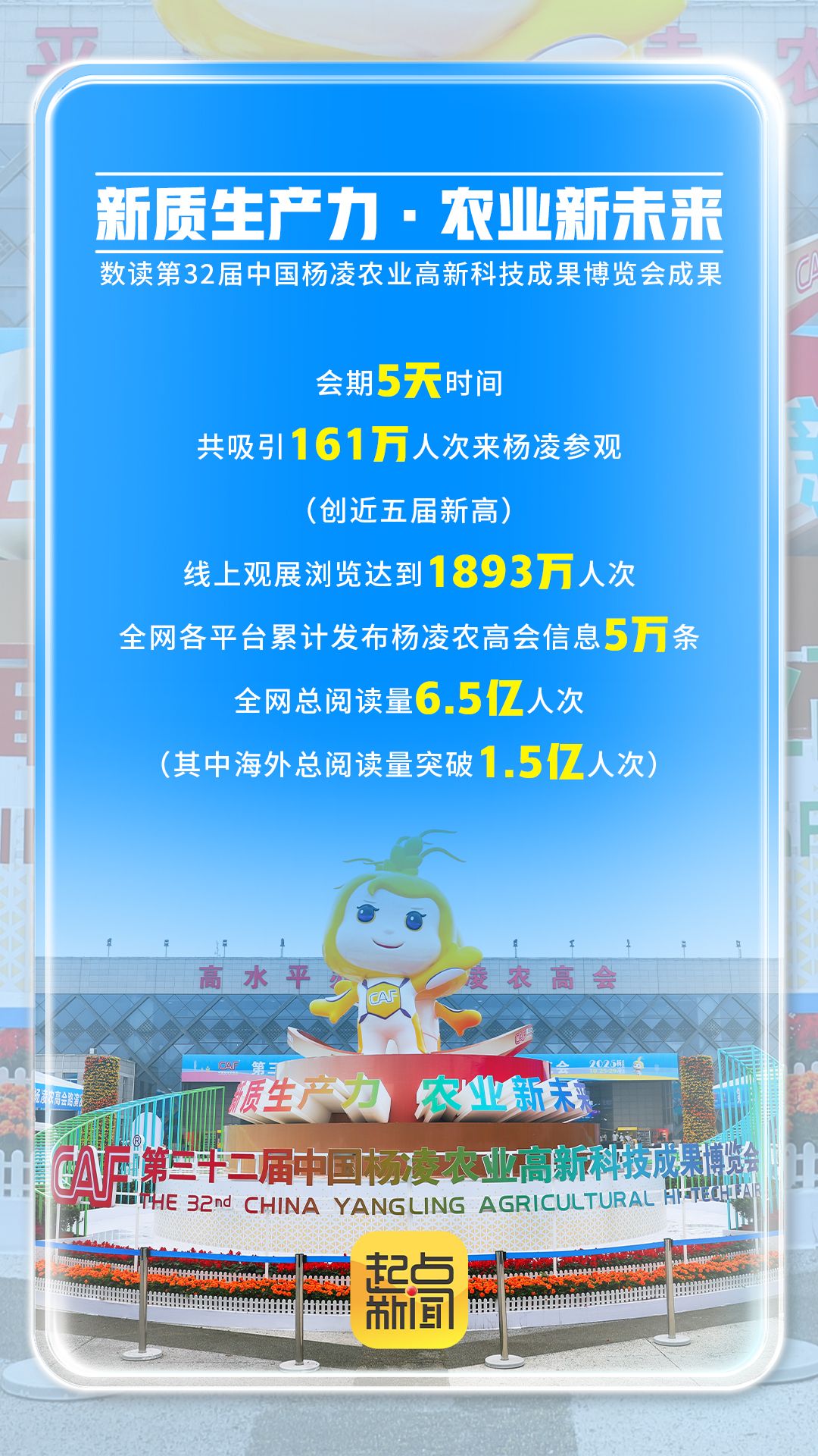 第32届中国杨凌农业高新科技成果博览会(以下简称杨凌农高会)于2025年10月25日至29日在陕西杨凌农业高新技术产业示范区举办。本届农高会取得了哪些成绩?跟着起点新闻一起数读农高会——