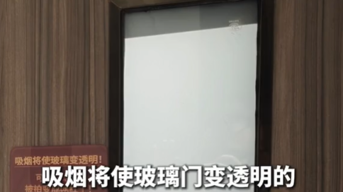 深圳罗湖某大厦几扇标注着“吸烟将使玻璃门变透明”的厕所门引发热议