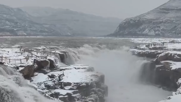 元旦假期,位于晋陕大峡谷的黄河壶口瀑布,以一幅银装素裹的冬日盛景,迎接新一年的到来。