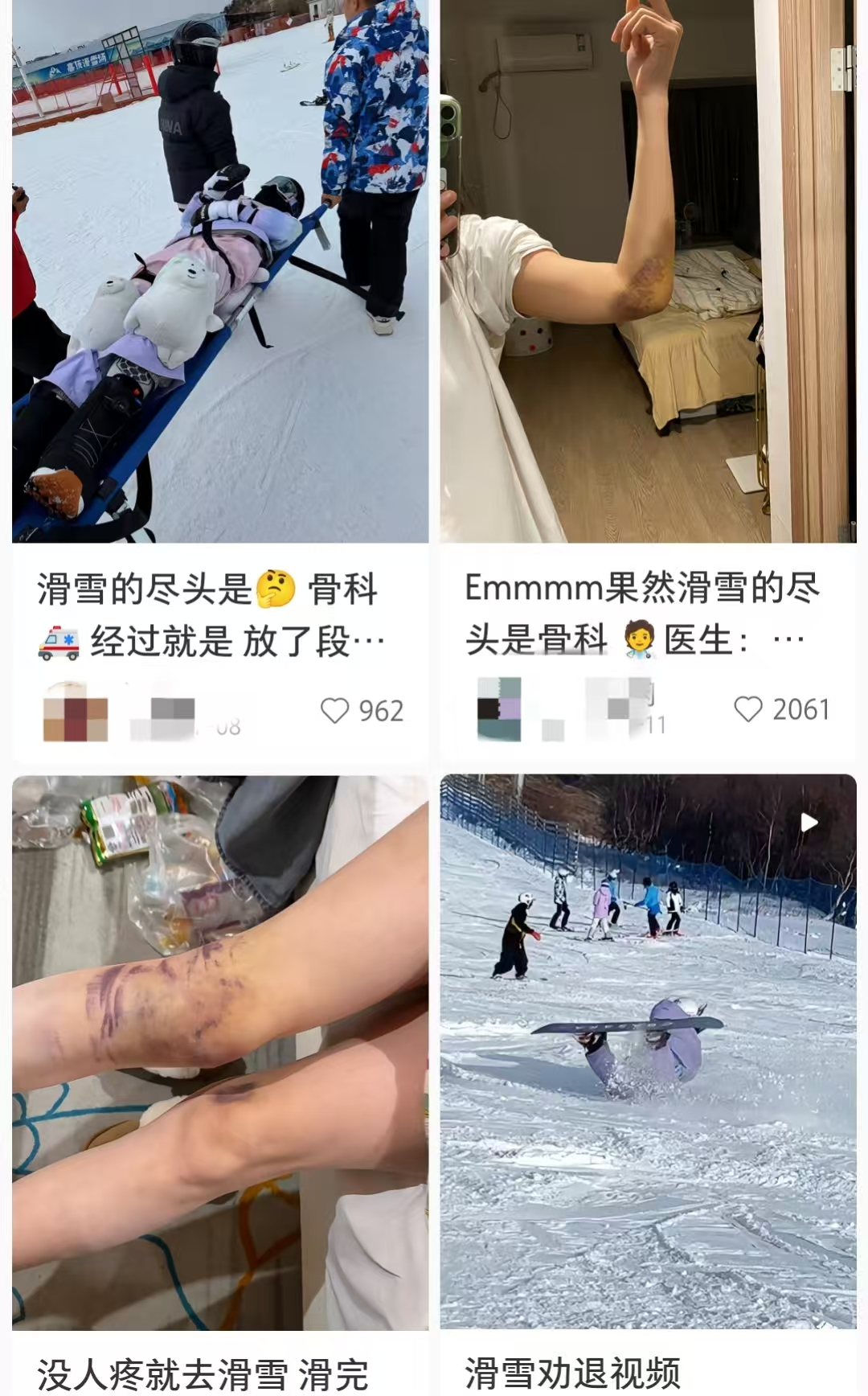 滑雪爱好者在社交平台分享自己不慎受伤的经历。