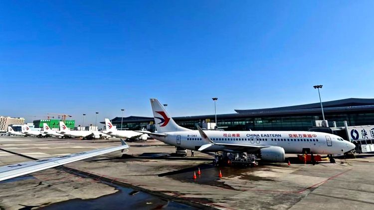 停放在西安机场的东航飞机