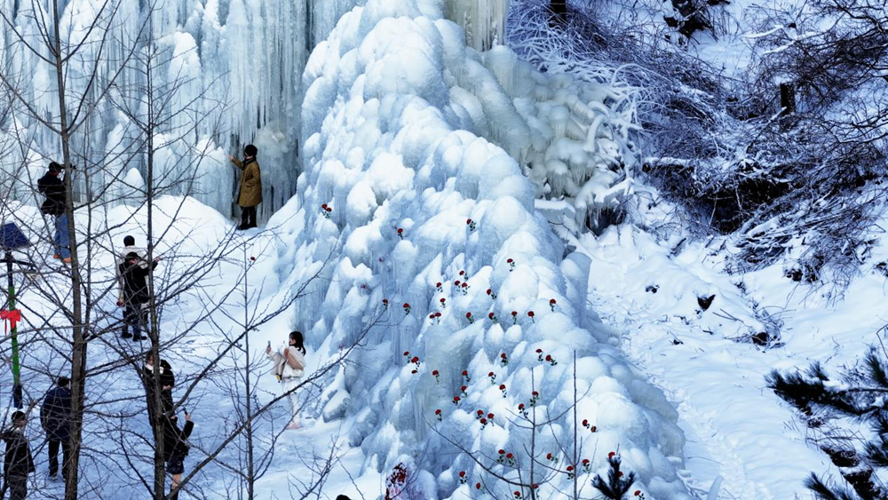 翠华山景区打造的“冰瀑”和“冰封玫瑰”游玩项目