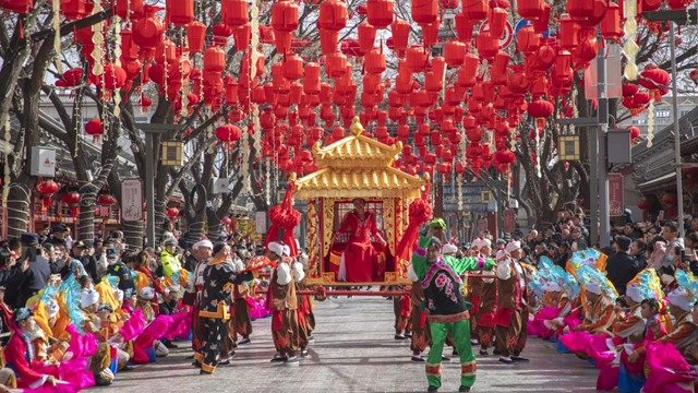《闯王花轿》是闯王李自成故乡陕西米脂的一项复合型民俗表演,在2026“陕北榆林过大年”秧歌展演活动现场,以《天鹅湖》为背景音乐的《闯王花轿》秧歌表演,则依靠“混搭风”赢得许多观众会心一笑。