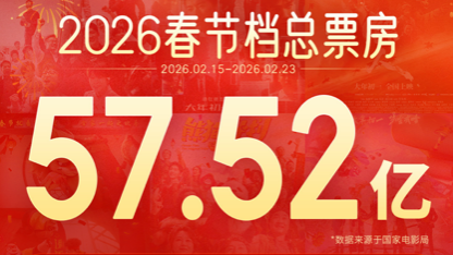 起点新闻·西部网记者注意到,网络平台数据显示,截至2月24日9:00,2026年春节档票房为57.52亿元,观影人次为1.20亿,春节档上映的影片票房分别为:《飞驰人生3》29.27亿元,成为今年春节档票房冠军。《惊蛰无声》8.68亿元,《镖人:风起大漠》8.06亿元,《熊出没·年年有熊》7.14亿元,《熊猫计划之部落奇遇记》1.93亿元,《星河入梦》8057.96万元,《夜王》7245.40万元。