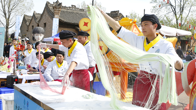 蓝田厨师学校的学生展示拉面技能