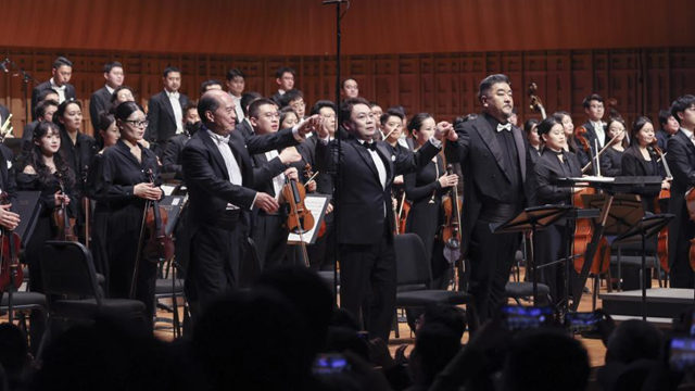 音乐会的下半场迎来了当晚的重头戏——肖斯塔科维奇《森林之歌》迎来西安首演。XSO西安交响乐团音乐总监、首席指挥张国勇率男高音王川、男低音关致京,与XSO西安交响乐团、XSOC西安交响乐团合唱团及西北民族大学合唱团组成170人大型编制,在宏大叙事与细腻情感之间,将作品所承载的时代回响与生命力量铺展于舞台,现场掌声与欢呼经久不息。