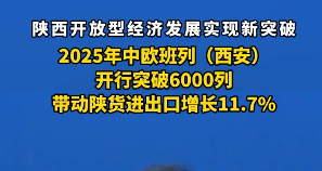 陕西开放型经济发展实现新突破,2025年中欧班列(西安)开行突破6000列,带动陕货进出口增长11.7%。