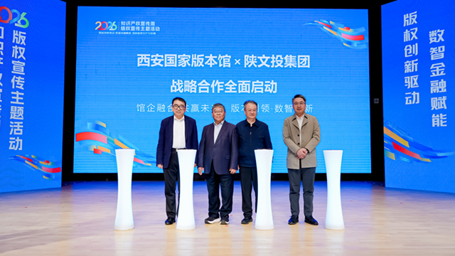 4月22日,为迎接第26个世界知识产权日,由西安国家版本馆、陕文投集团主办,西部国家版权交易中心承办的2026年知识产权宣传周版权宣传主题活动在西安国家版本馆举办。本次活动围绕“版权创新驱动、数智金融赋能,加快新质生产力发展”主题,旨在展示版权创新成果,凸显“版权+科技”创新融合、“版权+金融”深度赋能、版权数字化创新应用等工作的发展成绩与亮点,助力陕西省文化产业提质增效与高质量发展。