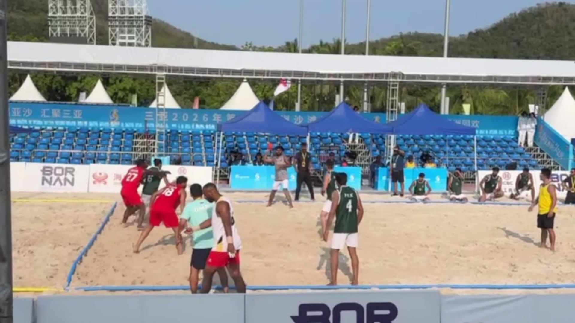 暖阳映沙海,竞技展豪情。作为第六届亚洲沙滩运动会观赏性和对抗性很强的项目,沙滩手球4月27日在海南三亚精彩进行。来自亚洲17个国家和地区的参赛队伍齐聚一堂,在细软沙滩上展开激烈角逐,以灵动技巧与昂扬斗志,展现沙滩手球运动独有的活力与魅力,点燃亚沙会赛事激情。