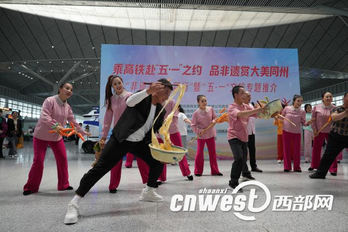 活动先后在西安北站、大荔站广场及高铁列车上同步开展。在西安北站,非遗传承人通过技艺展示、互动体验等形式,向旅客展示大荔剪纸、面花、刺绣、皮影、葫芦工艺等特色非遗;文旅推介环节集中发布精品旅游线路、特色文旅产品和惠民政策,吸引众多旅客驻足了解、咨询打卡。此外,高铁列车化身“移动文化展厅”,西安客运段和文旅部门的工作人员通过文艺展演、互动问答、文旅推介等形式,将大荔非遗文化和旅游资源带到旅客身边。