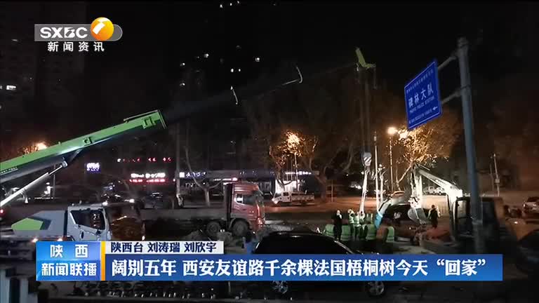 西部网讯(陕西广播电视台《陕西新闻联播》记者 刘涛瑞 刘欣宇) 友谊路上的法国梧桐树对古城西安市民有着不一样的意义,从新中国成立到如今,郁郁葱葱的梧桐树已经伫立了60多年,蕴含了几代人的成长记忆,见证了西安日新月异的发展。2015年11月,这些法国梧桐为地铁五号线施工让路,在寄养五年之后,今天(12月21日)它们终于回家。