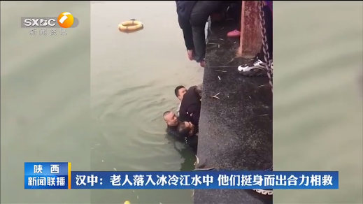 西部网讯(陕西广播电视台《陕西新闻联播》记者 刘妞)11月27日上午,在汉中天汉大桥附近,一名老人不慎落水。危急时刻,三位热心市民先后跳入江中,和周围群众一起合力将老人救托举上岸。