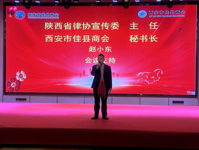 大会由陕西省律师协会宣传委主任、西安市佳县商会秘书长赵小东主持。会议在激昂雄壮的《东方红》歌声中拉开帷幕。洛川县委常委、统战部部长李永伟首先致欢迎辞,对年会的召开表示热烈祝贺,并介绍了洛川的发展现状与投资环境,诚邀广大企业家关注洛川、投资洛川。