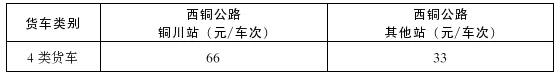 西铜公路4类货车优惠后的标准按下表执行: