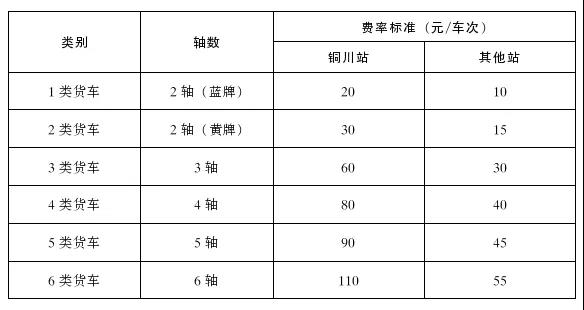 (二)西铜公路按车次收费,费率标准如下: