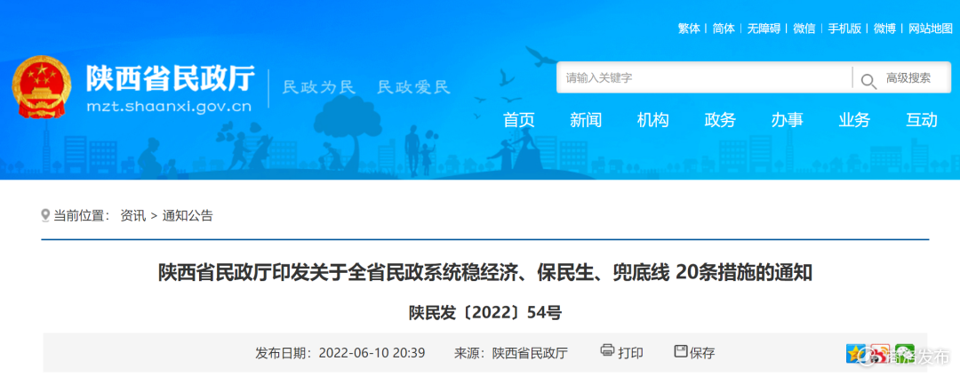 为深入贯彻党中央、国务院决策部署和省委、省政府工作安排,全面落实全国、全省关于稳住经济大盘有关要求,就全省民政系统稳经济、保民生、兜底线提出20条措施,现通知如下。