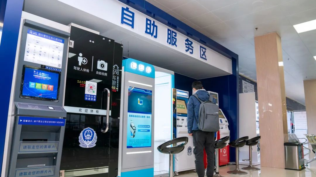 现场值班警长说:“自助服务区白天为窗口服务做补充,夜晚通宵营业不打烊,目前可以自助查询违章、自助完成驾驶人体检项目并采集照片,还可以完成换驾照自助制证。以后还将试点设置驾考理论考试自助考试机。”