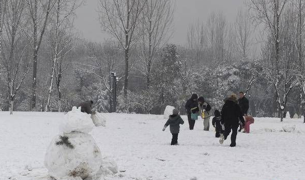 2024年1月16日,西安下起了鹅毛大雪,不少市民拍照记录美丽的冬雪。下午5时,在西安曲江杜邑遗址公园,市民们来赏雪、玩雪,家长们带着孩子尽情感受雪趣。