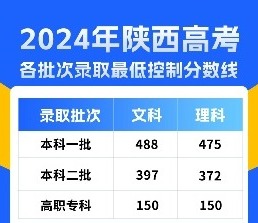 经省招生委员会研究决定,2024年全国普通高等学校招生陕西省各批次录取最低控制分数线如下: