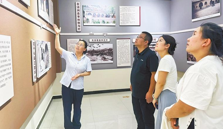 7月19日,游客在毛主席东渡黄河纪念馆认真聆听红色故事。 记者 李旭佳摄