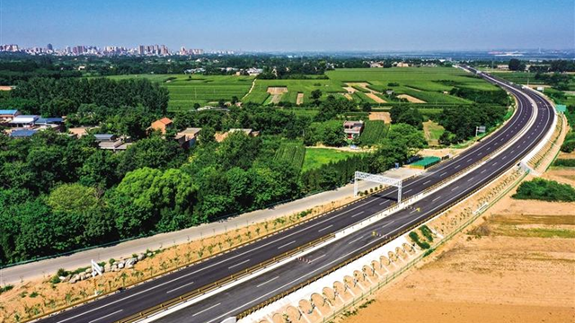 兵马俑专用线公路改扩建工程建设进入尾声(8月12日摄)。