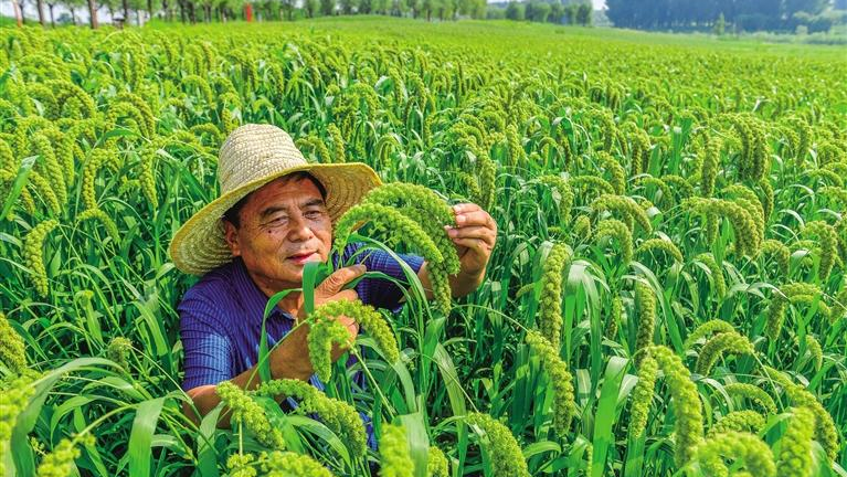 8月14日,沣河河畔,西安市长安区种粮大户、西安正社小麦玉米专业合作社负责人薛拓看着眼前沉甸甸的谷穗高兴地说:“成了,今年试种的秦杂谷6号一代杂交谷成了。”