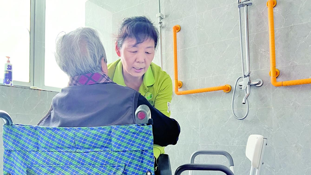 当天,王玉芩和同事先用半个多小时为老人打扫了浴室,并在地上铺设了防滑垫,随后摆放好换洗衣物。“老人洗澡的时间,需要控制在半小时左右。半身不遂的老人下半身对温度的感知很弱,所以需要提前放水。测好水温后,将浴室温度调整到舒适的状态,再将老人推进去。”王玉芩说。