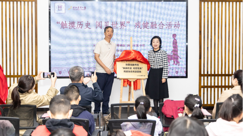 活动现场,汉景帝阳陵博物院副院长何宏作了《博悟 关爱——汉阳陵文化解读》等主题分享,并与陕西省图书馆工会主席胡竹林一起为“触摸历史 阅见世界”残健融合阅读基地揭牌。在随后的互动研学环节中,学生们参观了考古陈列馆和地下博物馆,以及“童心筑梦 绘彩国庆”少年儿童美术作品展。通过触摸文物复制品,体验瓦当拓印,参与模拟考古发掘等方式,深入感受古代文明和传统文化的魅力。