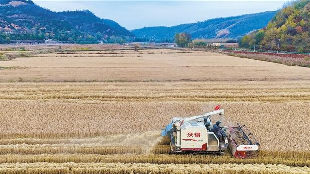 近日,在被誉为“陕北好江南”的延安南泥湾,千亩水稻迎来收获季。受前期气温影响,今年当地水稻成熟期较往年有所提前,在新品种助力下,亩产量也有所提高。随着新技术的推广应用,目前,南泥湾水稻种植面积已达1000亩,亩产值超4000元。