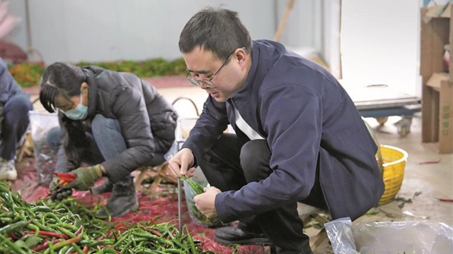 11月16日,宜君县五里镇雷声村种植基地的大棚里,村党支部书记田磊仔细查看辣椒长势。如今,基地的农产品不愁卖,田磊把更多的精力放在提升品质、叫响品牌上。然而,几年前,田磊还是另一种心境。