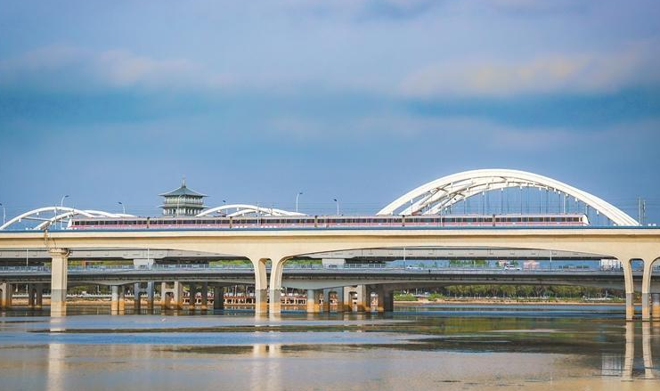 图为西安地铁3号线列车快速驶过广运大桥(2024年5月14日摄,资料照片)。 受访单位供图
