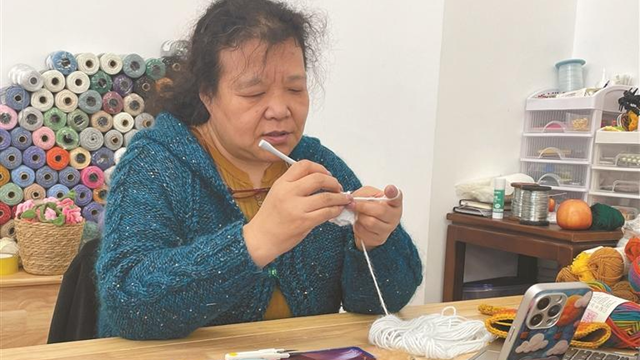 一上午的时间,工作室里格外热闹:有人来交成品、领原料,有人请教编织技巧。高亚娥认真地验货、答疑,手中的钩针却始终没停。不知不觉间,桌上已堆起一排俏皮可爱的毛线玩偶,仿佛一个个承载着平凡梦想的小精灵,静静地诉说着生活的美好与希望。