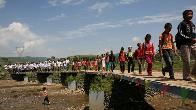 此前,她很少过桥。旧桥是4根被岁月磨得光滑的木头,用铁丝捆在一起建成的。桥下河水稍一上涨,便轻松没过桥面。
