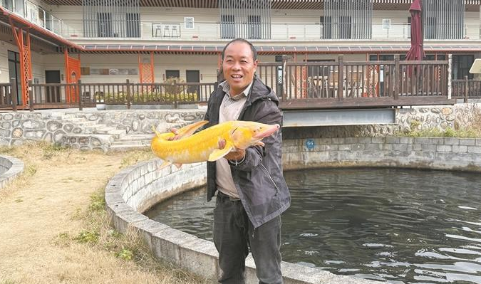 “这些鱼苗明年就能长到3斤左右,到时候在市场上会受到消费者的喜爱。”许自贵介绍,两年前自己承包了村集体的12个养殖池,和村里另外30多名村民一样发展起冷水鱼养殖。