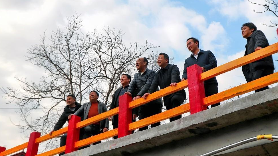 在淳化县城关街道城关村,群众为今年家门口新建的“慈善便民桥”点赞(资料照片)。