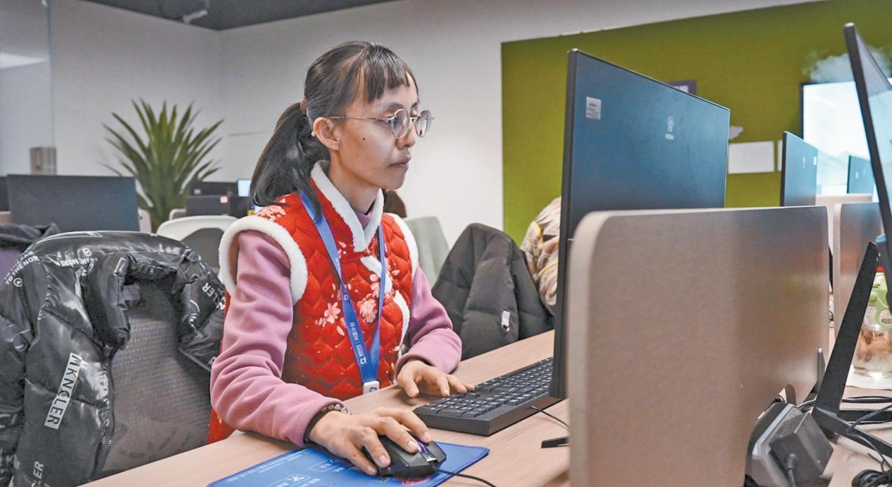 1月4日,梁景在陕西爱目数智科技有限公司进行人工智能数据标注。 记者 田芳昕摄