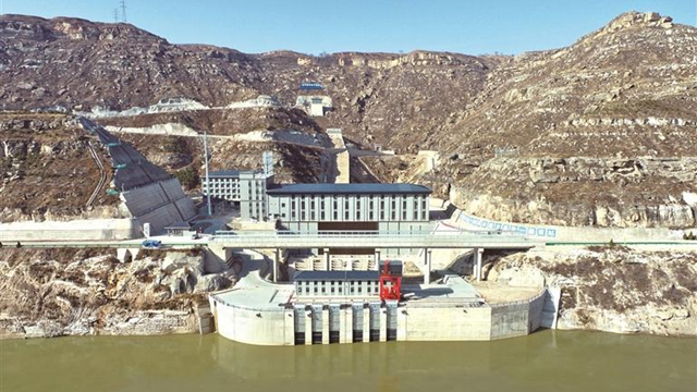 2月4日,在陕西省交口抽渭灌区渠首引水枢纽改造工程现场,一座崭新的进水闸矗立在渭河北岸。