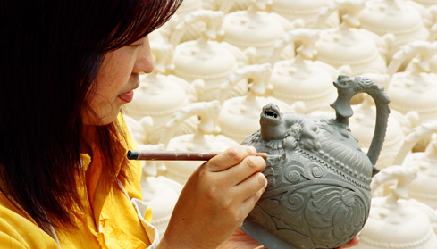 以前,耀州瓷陈列在博物馆的展柜里,是倒流壶、凤鸣壶的代名词,精美却离人们的生活格外遥远。如今,它以另一种方式被嵌入冰箱贴等,走进寻常百姓家。