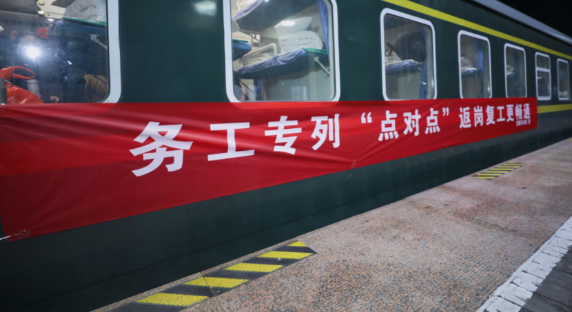 这是秦巴山区今年首趟“点对点”团体务工专列。该专列由中国铁路西安局集团有限公司安康车务段加开,自四川宣汉车站发往上海。专列自1999年开行以来,累计开行超过740趟。