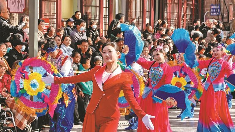 2月19日,在蒲城县槐院里历史文化街区,演员献上贺岁演出。记者 陈绮珠摄
