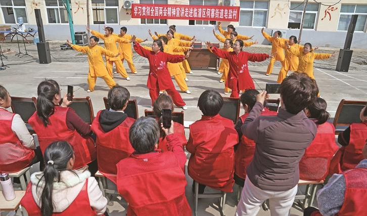 3月27日,在“与礼‘潼’行”新时代文明实践直通车活动上,群众表演八段锦。