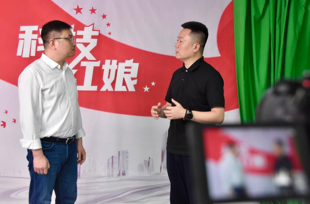 程凡(右一)在和同事录制“科技红娘”技术转移知识短视频。新华社记者 郑昕 摄