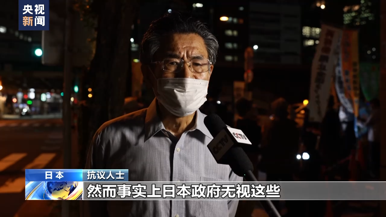 总台报道员 林博翰:当地时间7日晚间,日本民众自发在日本东京电力公司总部门前举行抗议集会,抗议日本政府和东京电力公司将核污染水排放入海,他们认为将核污染水排放向海洋中,是极为不负责任的行为。